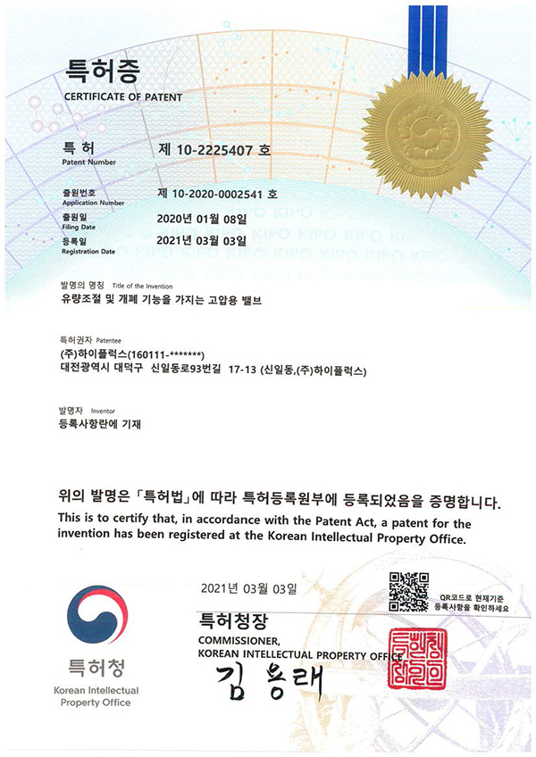 명칭 : 유량조절 및 개폐 기능을 가지는 고압용 밸브