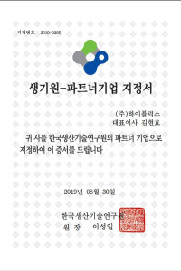 생기원-파트너기업 지정서