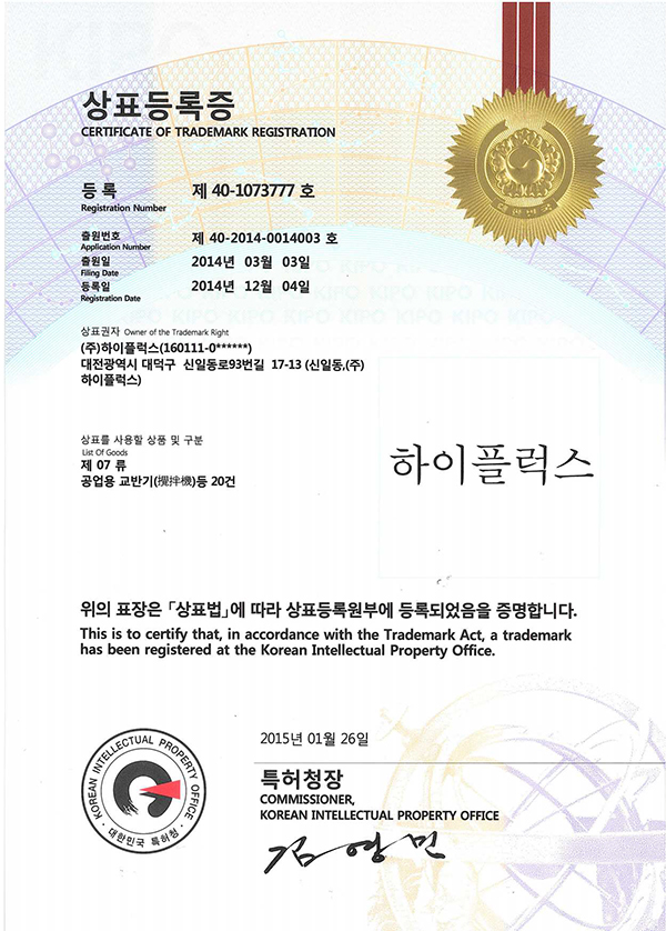 상표권 상표권(제 40-1073777호/하이플럭스)
