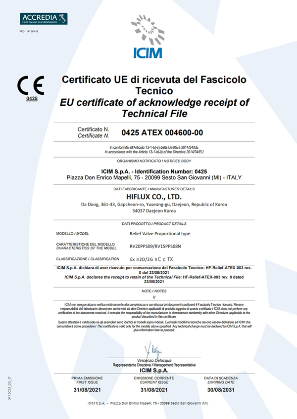인증서 CE 인증서 - Relief Valve (Proportional Type)