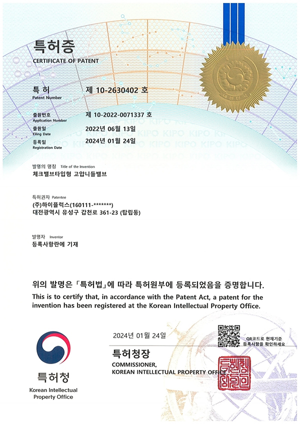 - 이전글특허등록증(제 10-2643784호) 25.08.07