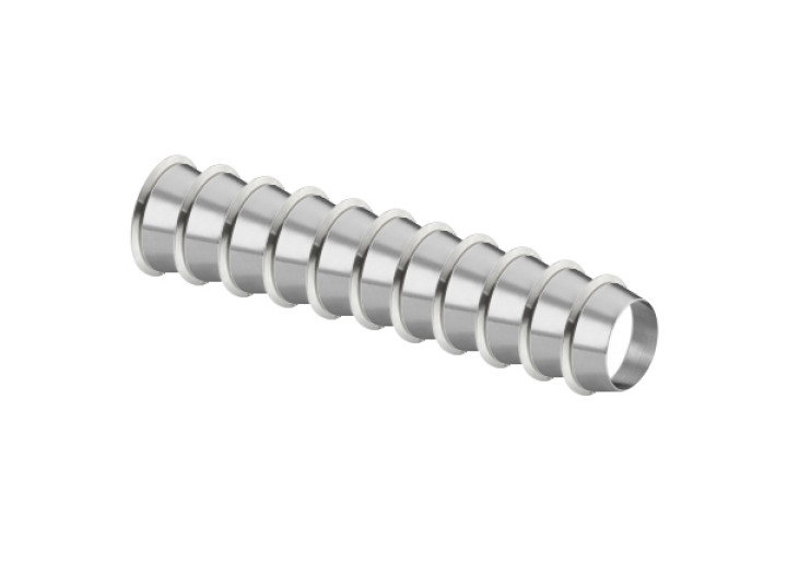 ![]() 2중 페럴(Double ferrule)로 밀폐와 튜브 조임 작용이 분리되어 있으며 각각의 작용에 최적화 됨. 전위 페럴(Front ferrule)은 피팅 몸체에 맞닿아 튜빙 외부 직경에서 1차 밀폐를 도움. 후위 페럴(Back ferrule)은 축방향으로 전위 페럴을 밀어 안쪽으로 힌지작용을 하여 튜빙을 단단히 조임.