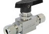 양방향 흐름이 가능한 일체형 볼 스템 디자인의 계장용 볼 밸브.