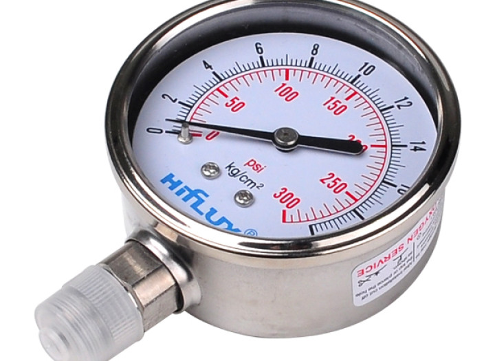 | 하이플럭스 압력게이지(Pressure Gauge)는 가장 널리 사용되는 압력계로 펌프, 유압프레스, 각종 공작기계 및 시스템 장비의 다양한 압력 측정에 사용됩니다. Stainless steel 소재 사용으로 외부 조건 변화에서도 뛰어난 내식성을 가지며 기계적 진동과 맥동이 심한 환경에서의 압력 측정에 탁월합니다. 맥동압이 심한 압력 계측도 정지에 가까운 상태로 보다 정확하게 읽을 수 있으며 계기의 무게가 가벼워져 장기간 사용할 수 있으며 사용자가 원하는 장비의 구성을 쉽고 빠르게 돕습니다. |